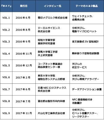 『WAY』は2016年6月に創刊。A&D製品がユーザー様にどのような目的で、どのようにお使いいただき、その結果どのようにお役に立てているかをお知らせする情報マガジンです。