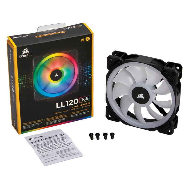 LL120 RGBは、CORSAIR Link制御に対応した120mm RGBファンです。2つのRGBライトループは16個の高輝度LEDを備え、様々なライティングプロファイルの設定はもちろん、ファンの回転数、グループ同調設定などが可能です。独自の薄型ファンブレード、回転抵抗を低減させたハイドロリックベアリング、共振を抑制する防振ラバーダンパーにより、優れた静音性を実現します。ファン1個の増設用パッケージ、ファン3個とLighting Node PROを同梱したバリューパッケージ、用途で選べる2つのモデルをラインアップ。