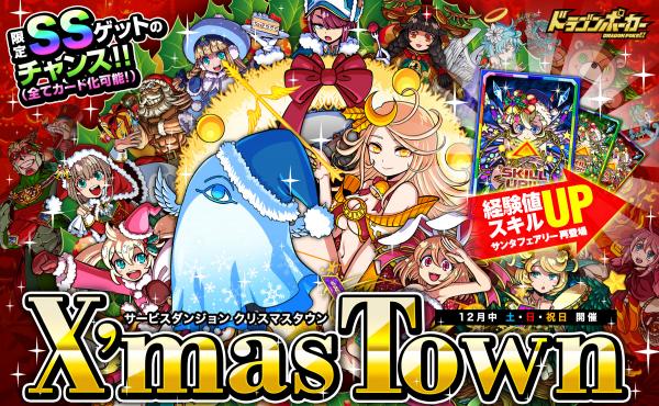 本ダンジョンでは、開催期間中にしか遭遇できないクリスマス限定の「サンタフェアリー」や、ボスモンスターが出現します。ボスとして出現する限定SSレアモンスターは、カード化を成功させると手に入ることがあります。12月は『ドラゴンポーカー』でクリスマスを楽しみましょう!