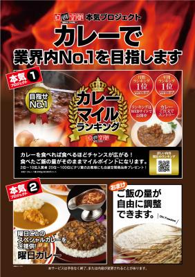 本キャンペーンでは、対象の自遊空間店舗でカレーを注文頂くとカレーマイルポイントが溜まり、月間、年間ポイントランキングの上位者には自遊空間でご利用頂ける商品券を贈呈いたします。