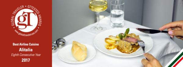 アリタリア-イタリア航空は (米)グローバル・トラベラー誌が同誌読者のフリークエントフライヤー22.000名を対象に実施した旅行/観光業界に関する調査をもとに選出する 「ベスト・エアライン・キュイジーヌ賞」を今年も受賞致しました。弊社はこの栄えある賞を8年連続で受賞しています。