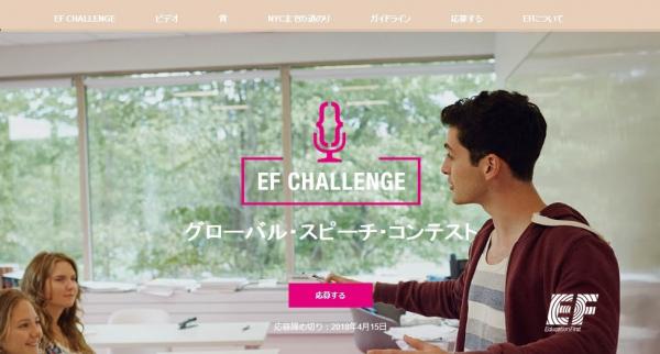 EFチャレンジは、13歳から18歳までの中高生を対象にした世界規模の国際スピーチ・コンテストです。毎年設定されるスピーチテーマに対し、参加者はショートスピーチ原稿を作成、動画を録画、投稿することでエントリーすることができます。本企画は、人々を突き動かす自身のアイデアや考えを表現し、伝えること、また、コミュニケーションによって世界を変えられることを次世代を担う学生に実感していただくことを目的とした教育プログラムで、政府が推進する「beyond2020プログラム」※1の認証を受けています。