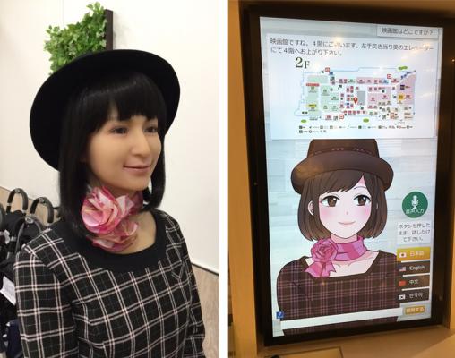 2017年11月24日のグランドオープンに合わせて導入された人体型ロボットインフォメーションは、ティファナ・ドットコムの人工知能(AI)接客システム「KIZUNA(絆)」を搭載しており、会話をしながら案内業務を行います。