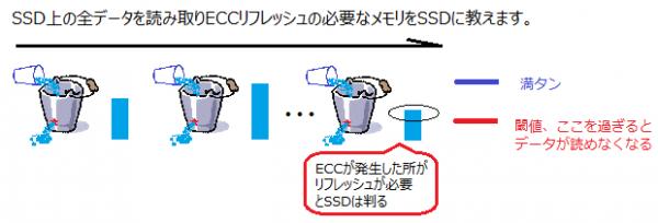 SSD上のメモリは定期的に読みとり正確に読める事を確認する必要があります。