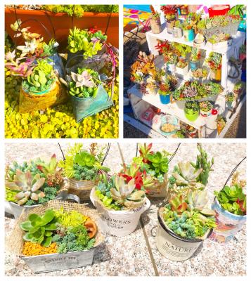 【内 容】多肉植物の寄せ植えのワークショップです。直径10cm程の容器に二つ作ることができます。