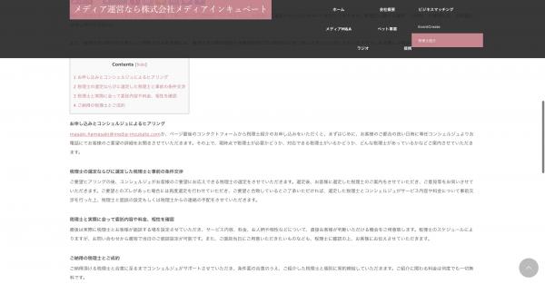 メディアに特化したM&Aサービスや(メディアM&A:http://media-incubate.com/media_ma/)、ペットのスターを育成するペット事業(ペットスター:http://media-incubate.com/petstar/)など展開。
