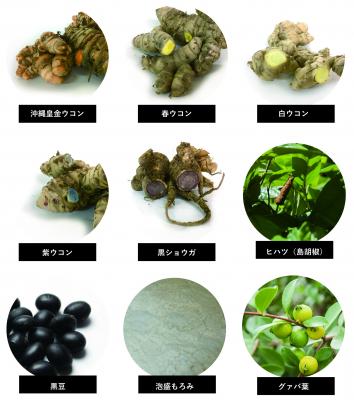 4種の沖縄県産ウコンに加え、血行不良や冷え、消化不良などに良いとされ、古くからアーユルヴェーダや漢方で用いられてきたヒハツ(ピパーチ、島胡椒)や原産国のタイでは1,000年以上も前から、滋養強壮や精力増強、疲労回復に効果があると言われ、近年の研究では、肥満解消や美容効果など様々な健康効果があるとされ注目度が高まっている黒ショウガ(黒ウコン)、泡盛の製造工程で生じ、アミノ酸やクエン酸などの疲労回復をサポートする成分が豊富と言われる泡盛もろみなど、沖縄ならではの素材を中心に配合し、これまでにない“飲む人のカラダ”を意識したナチュラル志向のサプリメントとして発売いたします。