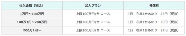 補償される金額は仕入金額(税込)か加入プランのいずれか低い金額を限度として見舞金が支払われ、最高で1台につき300万円まで補償されます。