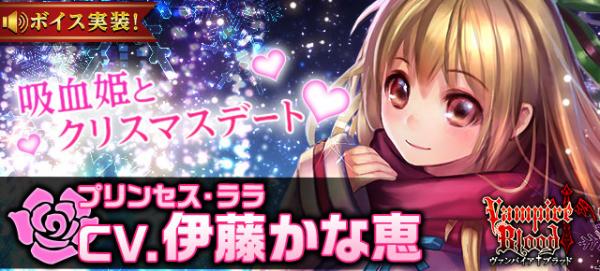 ソーシャルゲーム開発を行う、株式会社テンダ(本社/東京都豊島区、 代表取締役社長/小林 謙)は、「mobage(モバゲー)」など各ゲームプラットフォームで提供中のソーシャルゲーム『ヴァンパイア†ブラッド』にて本日12月13日(水)よりメインヒロイン「プリンセス・ララ(CV.伊藤かな恵)」のボイス付カードを期間限定で追加したことをお知らせいたします。