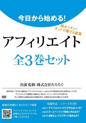 本DVDは、『今日から始める! アフィリエイト vol.1~vol.3』の全3巻をまとめたお得なセットです。