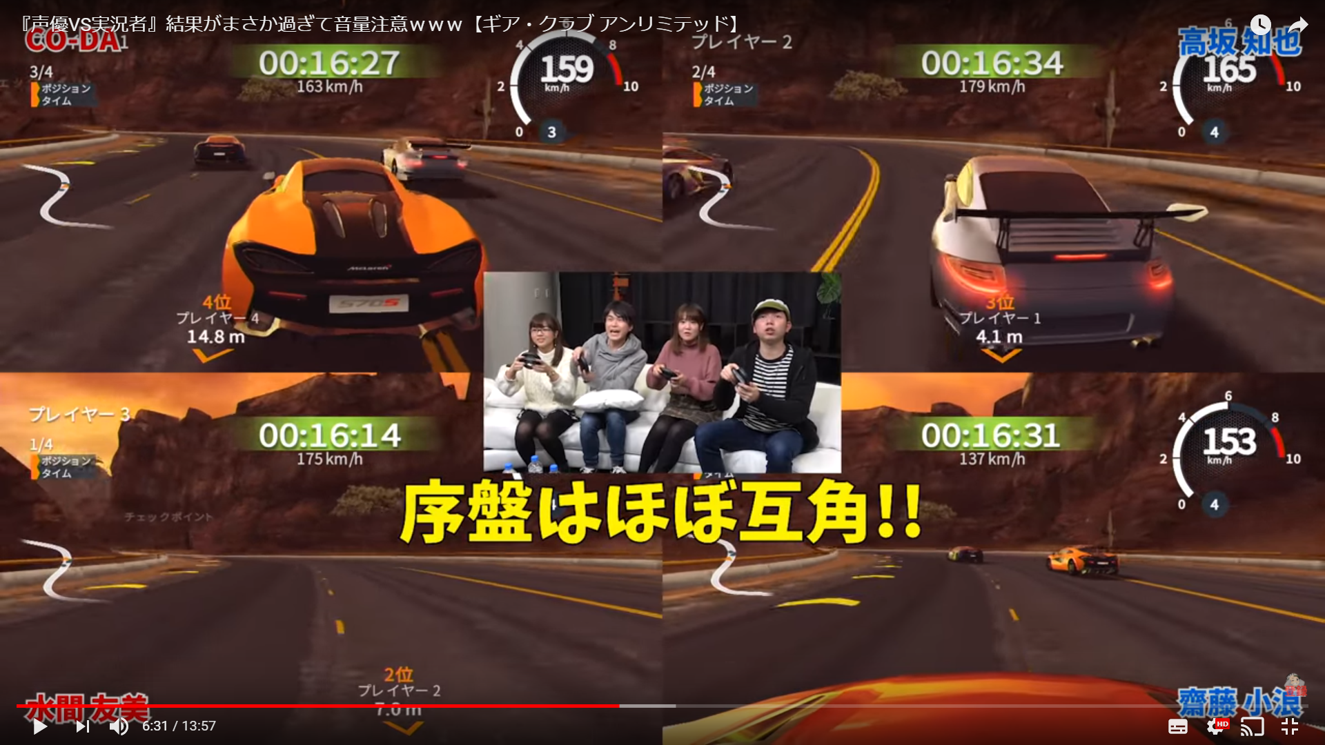 「ギア・クラブ アンリミテッド」は、画面分割による4人までのマルチ対戦がお楽しみ頂けます。その魅力を伝えるプレイ動画が公開中です。YouTuberのCO-DAさん、声優の水間友美さん、高坂知也さん、齋藤小浪さんの4名。齋藤さんの、「私免許持っていないんです。」のコメントから始まる2VS2のチーム対戦は、Joy-Conハンドルを使って行われ出演者の動きにも注目です。敗者チームの罰ゲームも用意されている対戦の結果はいかに!4人対戦の他、車のカスタマイズができるパフォーマンスショップなどゲームの魅力が余すことなく紹介されています。