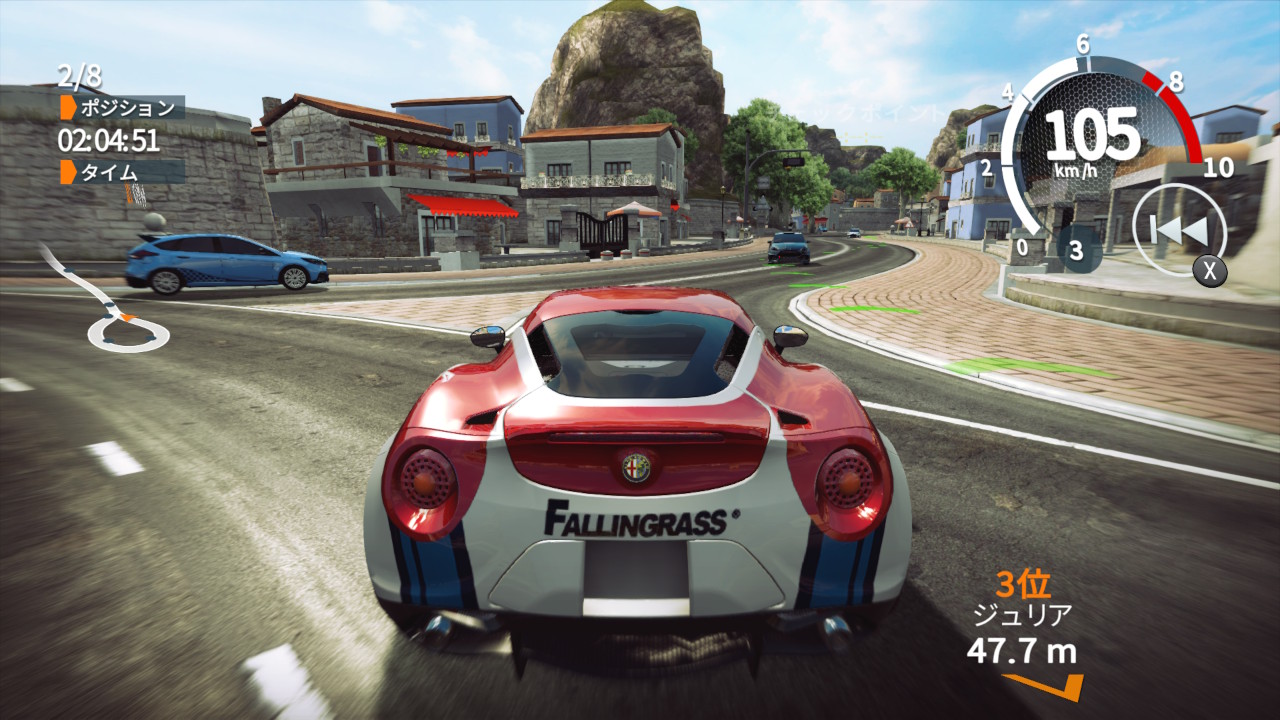 Nintendo Switch初の本格リアルレースゲームです。Joy-Conハンドルにも対応しています。メルセデスベンツ、アルファロメオなど世界の有名車種でレースが楽しめます。レースモードには、ライバルと順位を競うトラディショナルタイプのレース「ダービー」と、ゴーストカーとベストタイムの更新を狙う「タイムアタック」、コースは、ドライビングコンディションが異なる「ターマック」と「ラリー」を用意しています。「パフォーマンスショップ」では、愛車を展示し、眺めて楽しむことができることに加え、エンジンやサスペンション等のセッティングやカスタマイズができる多目的ガレージとなっています。「カーディーラー」では、新しい車種の購入が可能です。その他、画面分割モードによる4人までのマルチ対戦も楽しめるなど、全ての要素がリアルなレース体験を提供します。