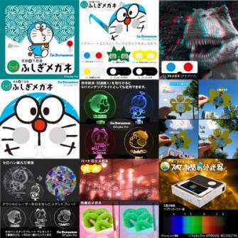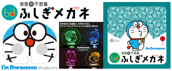 ドラえもん(I'm Doraemon)のメガネマスクにメガネを差し替えることで光と視覚の不思議体験ができる。メガネは6種類。