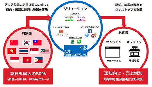 アウンコンサルティング株式会社(東証二部:2459、本社:東京都文京区、代表取締役:信太明、以下アウンコンサルティング)は、アジア89拠点で、マーケティング(SEM(検索エンジンマーケティング)サービス、インターネット広告など)、アセットなどのグローバルコンサルティングを展開しています。また、アジアにおいていち早くSEOを事業化し、2017年6月より20期目を迎えています。