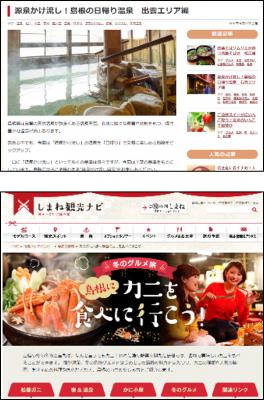 島根県観光連盟様では、島根県の公式観光情報サイト「しまね観光ナビ」(http://www.kankou-shimane.com/)を運営しています。