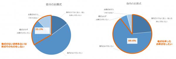 一方で、身内に対しては9割が儀式を含むお葬式を行いたいと回答