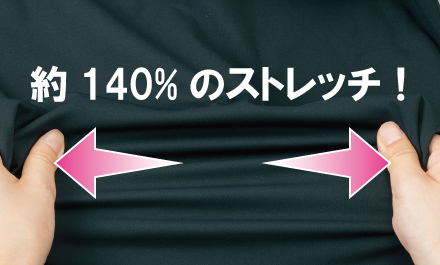 □従来のストレッチ生地と比較しても、約140%近いストレッチの性能を有した素材を採用。