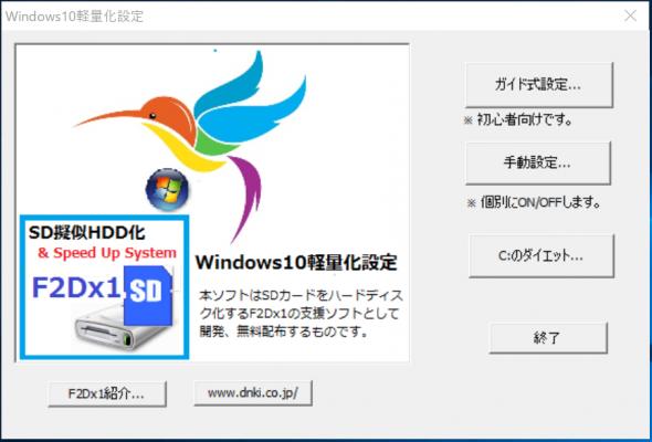 本ソフトはSDカードをハードディスク化してディスク容量を増やす「F2Dx1」の支援ソフトとして開発しましたが、個人ユーザに無料配布します。