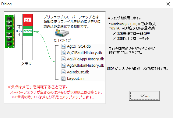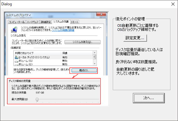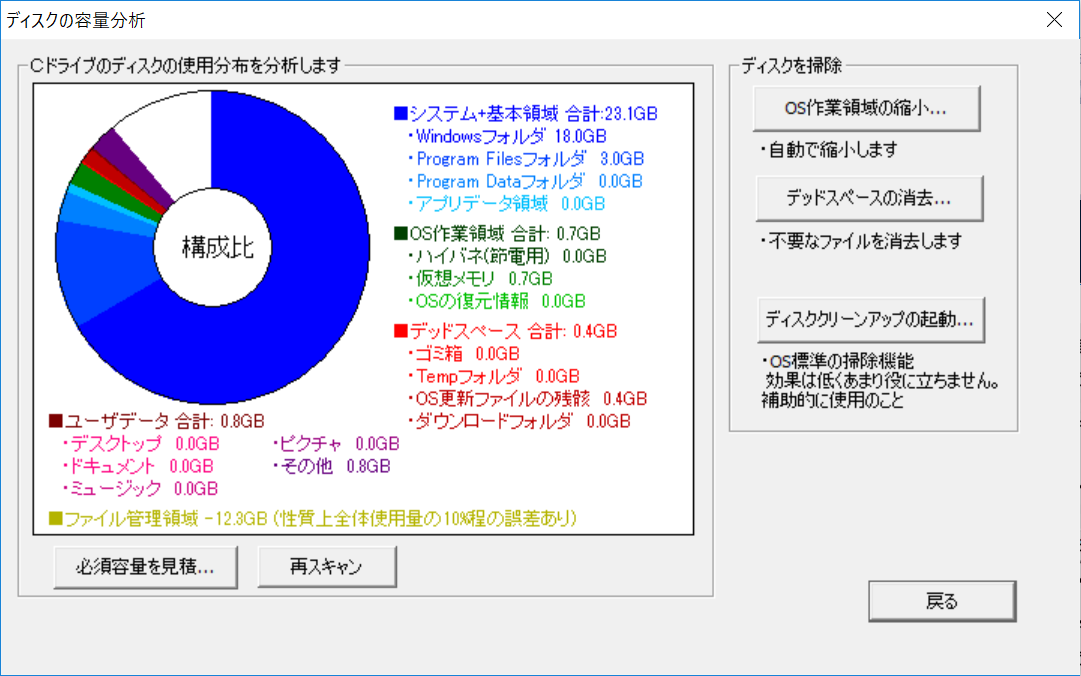 システムディスクの不要なファイルを保存場所、削除方法をアシストする機能を備えています。