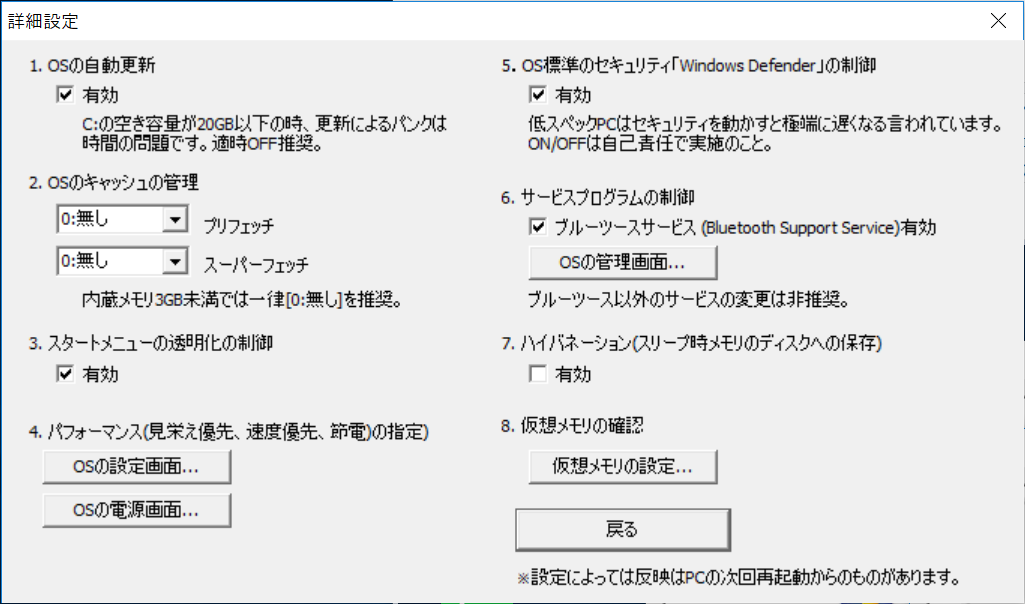 もちろんPCの設定を良く理解しているユーザ向けの詳細設定もあります。