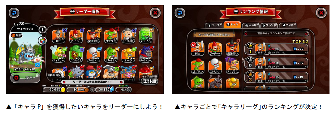 1月6日(土)より、ランキング報酬が毎日もらえる「毎日決着リーグ」を開催いたします。今回のリーグは、日によって対象キャラが変わる「日替わり選抜キャラリーグ」が同時開催され、対象のキャラをリーダーにして勝利するとキャラPが獲得できます。獲得したポイントによってキャラごとのランキングが決定し、順位の1番高いキャラのランキング報酬を獲得できますので、その日の選抜キャラを確認して上位を目指しましょう。
