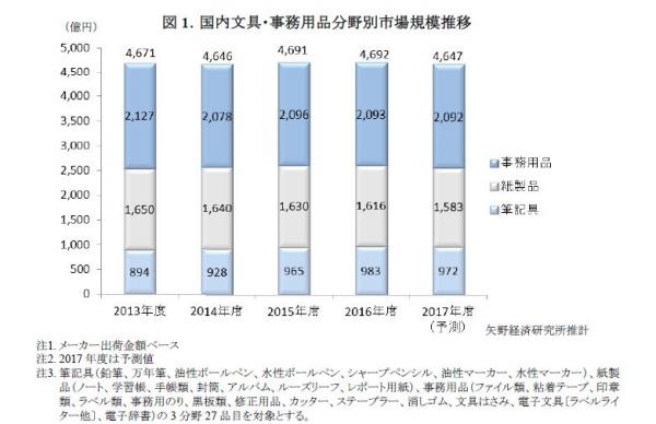 ◆2016年度の国内文具・事務用品市場は前年度比横ばい推移の4,692億円