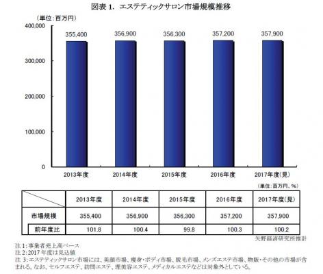 ◆2017年度のエステティックサロン市場規模は、前年度比100.2%の3,579億円の見込