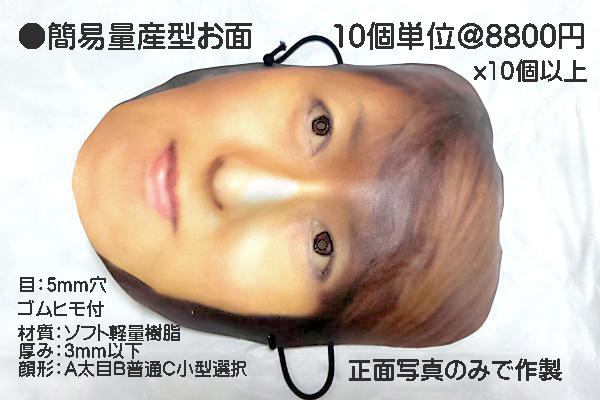 お面として、すぐ使えるように、目の穴やゴムひもなども標準で付いています。
