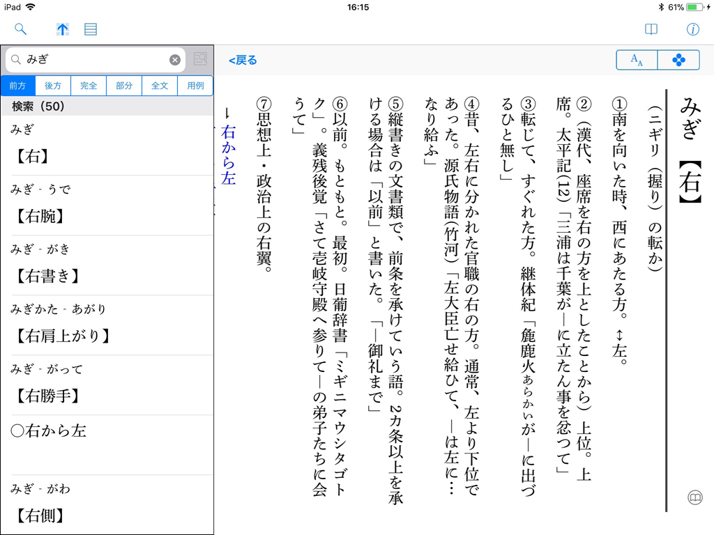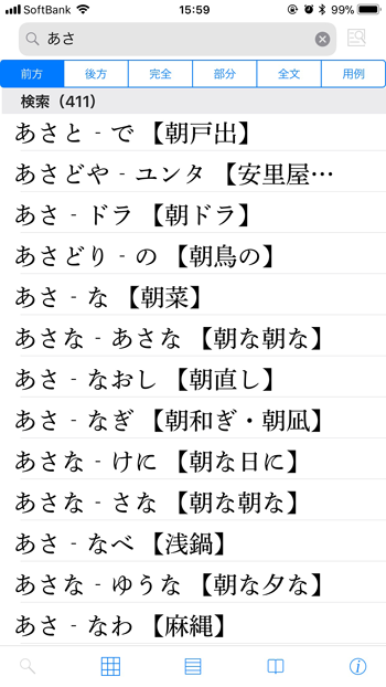 ●豊富な検索オプションを用意(前方一致/後方一致/完全一致/部分一致/全文検索/用例検索/分野検索)