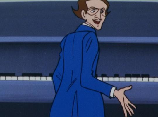 『チャージマン研!』の音楽を担当したのは『ウルトラマン』『ウルトラQ』などの音楽作曲で知られる宮内國郎(みやうちくにお/1932-2006)です。ジャズやロックの要素も加えつつ、オーケストラサウンドの魅力も発揮した仕事です。『チャージマン研!』は、「聴くことで苦しみ、死に至る謎のレコード」や「ピアノのお稽古用に作られた特殊なピアノ曲」など、音楽が中心になったお話も多く作られています。とにかくカッコイイ音楽なのです!