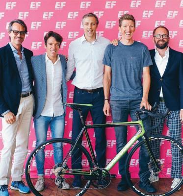 ※写真=左から、Doug Ellis (co-founder), Rigoberto Uran (pro cyclist), Eddie Hult (EF North America CEO), Sep Vanmarcke (pro cyclist), Jonathan Vaughters (co-founder/manager)
