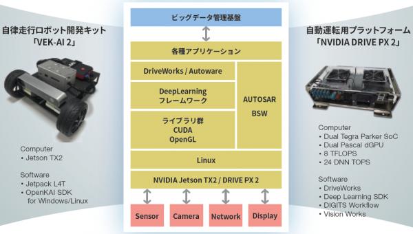 本スターターキットは、自動運転・ADAS(※)開発に必要なハードウェアと、その上で動作するソフトウェアで構成され、サポートも含みます。また、お客様には速やかな環境構築を提供するだけでなく、エッジデバイスからクラウド環境まで段階的な検証環境を用意し、AI(人工知能)やディープラーニングなど、GPGPU(※)を活用した将来的な研究開発をワンストップで支援します。