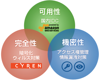 DirectCloud-BOXでは、通常ファイル保存時に物理的に区分けされた日本国内3ヶ所のデータセンターにファイルが分散保存されます。