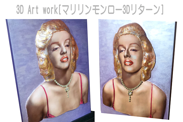作品「マリリンモンロー3Dリターン」、白黒写真をカラー編集し、
