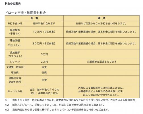 ドローン動画の空撮・動画撮影の料金は下記の通りです。