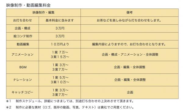 映像制作・動画編集料金の料金は下記の通りです。