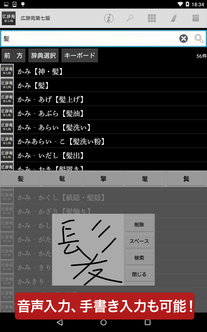 ●文字の手書き入力機能搭載(キーワード入力検索)