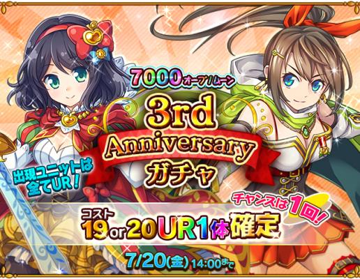 1回限り! UR 1体確定!「3rd Anniversary ガチャ」が登場します。