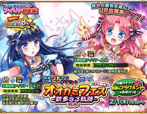 最高レアリティURの確率がアップしたオオカミフェスガチャが期間限定で開始されます。