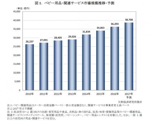 ◆2017年のベビー用品・関連サービス市場規模は、前年比106.7%の3兆8,708億円と予測