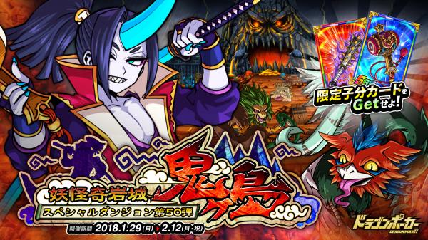 1月29日(月)メンテナンス後より、新スペシャルダンジョン「妖怪鬼岩城 鬼ヶ島」を開催いたします。今回のダンジョンでは「鬼神桃太郎」がボスモンスターとして登場!一緒に冒険する仲間と協力し、ボスモンスターを倒しましょう!