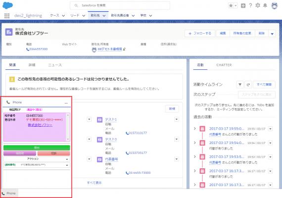 Salesforce画面にて、電話番号をクリックすることによりダイヤルすることなく発信が可能です。