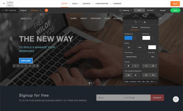 フォント色を変更したりして、A/Bテストを簡単に作成して実行できます。