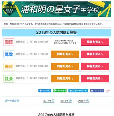 また、同ベージ内では2018年入試以前の2017年、2016年の問題と模範解答もあわせて掲載している。