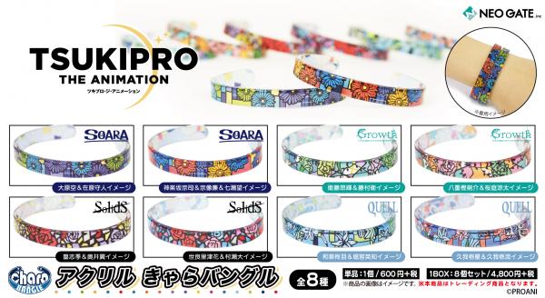 TVアニメ『TSUKIPRO THE ANIMATION』より、キャラクターモチーフのアクリル腕輪がトレーディング商品となったグッズ、【アクリルきゃらバングル】の発売が決定!