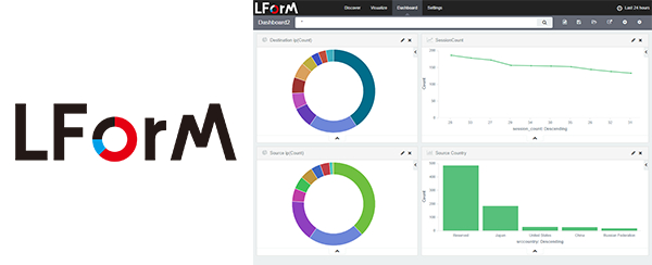LForM(エルフォーム)はネットワーク機器のログ、機器ステータスの可視化を行うツールです。現在はFortinet社のFortiGateのログ可視化に対応しており、今後はその他の機器にも対応していく予定です。ログを集約・可視化することにより、トラブル調査や傾向分析をスムーズに行うことができます。