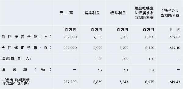 平成30年3月期 通期連結業績予想数値の修正(平成29年4月1日~平成30年3月31日)