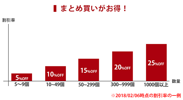 これまでのまとめ買い割引は10個からでしたが、まとめ買いがしやすい5個からの適用となります。