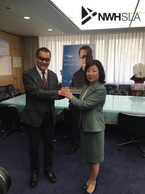 “消防応援団”を務める蝶野さんが、消防団員等公務災害補償等共済基金の「消防団員の公務災害防止のための啓発ポスター」に起用されることになり、2月8日、野田聖子総務大臣、消防庁・稲山博司長官、日本消防協会・秋本敏文会長、東京消防庁・鈴木浩永防災部長訪問を表敬訪問しました。