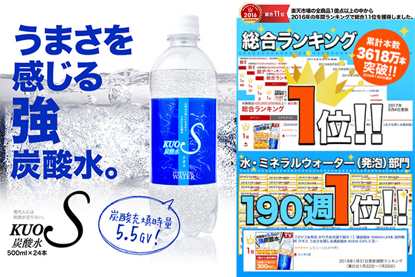楽天市場の水・ミネラルウォーター(発泡)部門にて190週1位を獲得し、現在でも記録を更新中です。